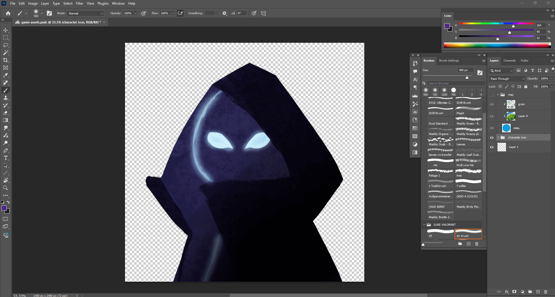 I painted the art, mini-map and character's head icon in Photoshop, while the ability icons and HUD were designed in Figma.